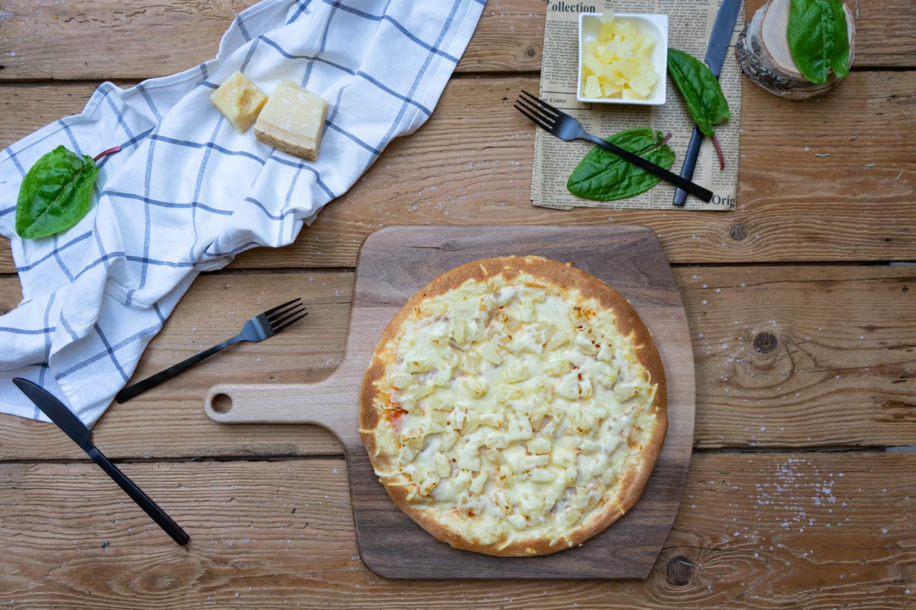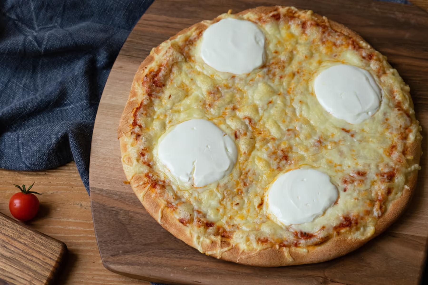• Quatro-formaggio Paradicsomszósz, trappista, mozzarella, füstölt, edami sajt, olívabogyóGluténTej