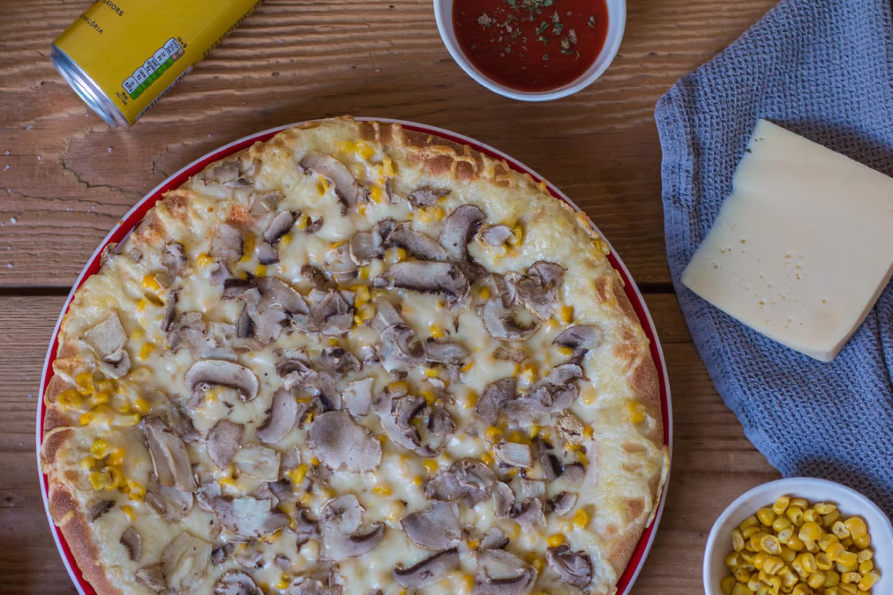 • Esmeralda Paradicsomszósz, sajt, sonka, gomba, kukoricaGluténTej