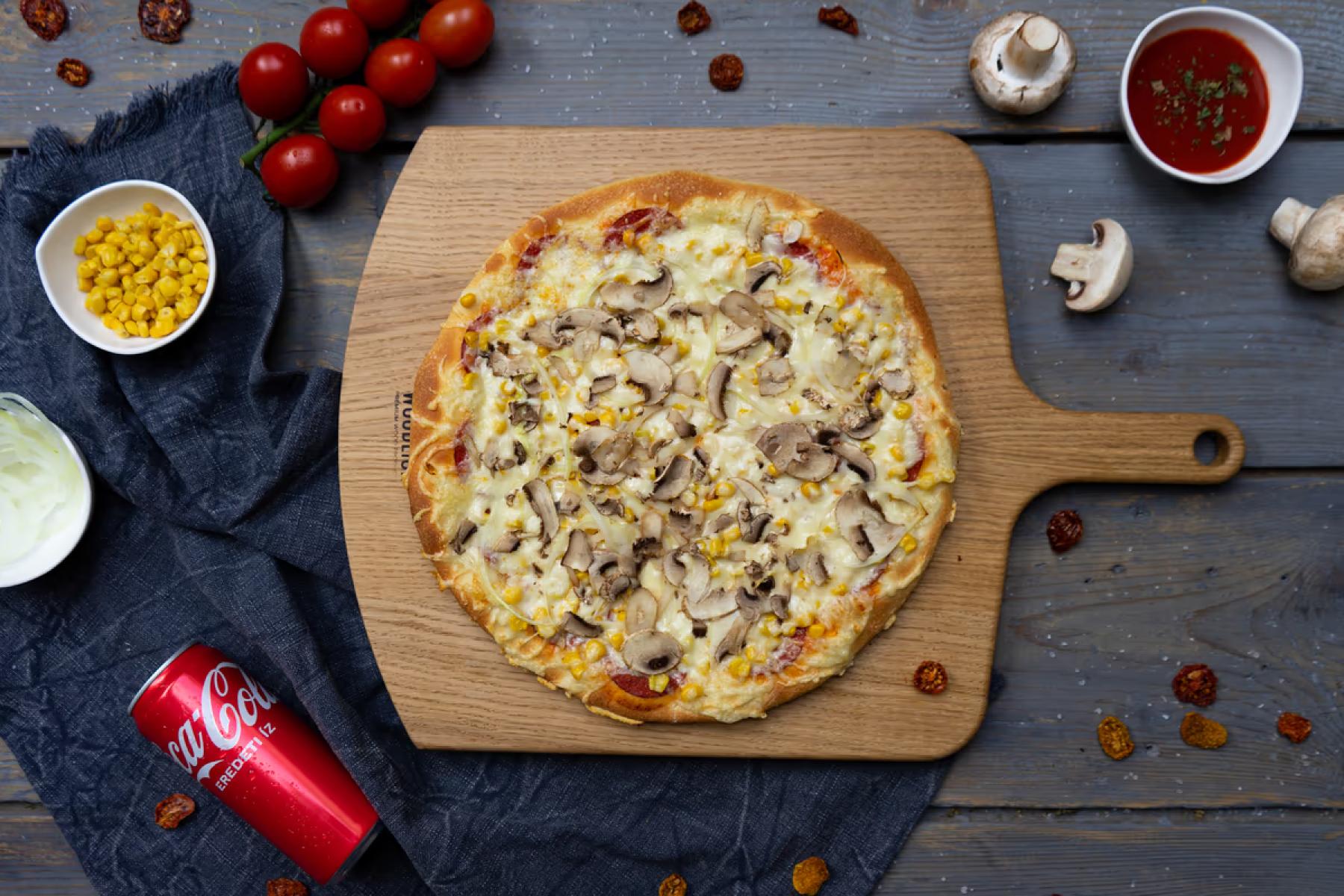 • Mamma mia Paradicsomszósz, sonka, gomba, hagyma, kukorica, borsó, olívabogyó, kolbászGluténTej